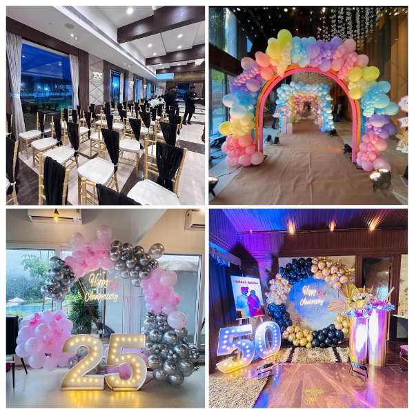 Our decoration packages include themed balloon setups, elegant arches, balloon pillars, photo backdrops, LED balloons, table centerpieces, and custom name displays. Perfect for birthdays, baby showers, weddings, and corporate events. We offer flexible packages to suit your style and budget, making every celebration vibrant, stylish, and unforgettable.